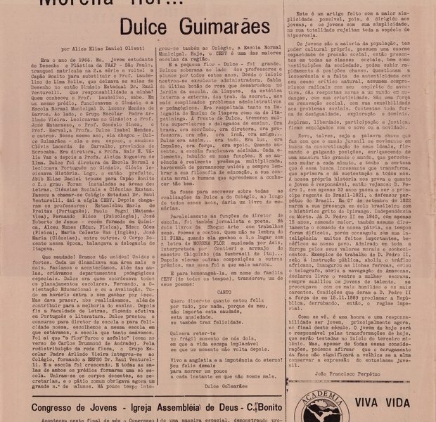 Dulce Guimarães foi embora, para ficar, eternamente, entre nós
